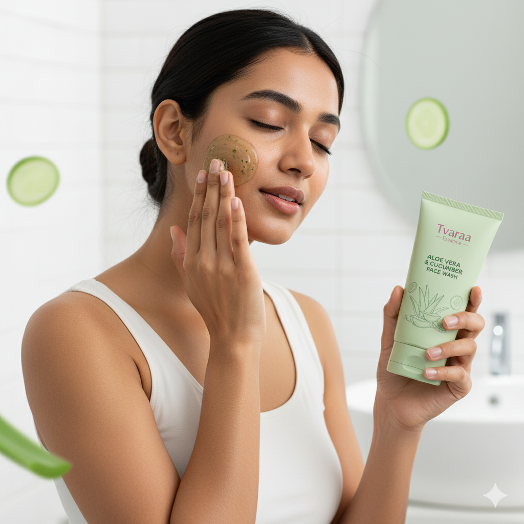 Discover nature’s calm in every wash with Tvaraa Essence Aloe Vera & Cucumber Face Wash — your daily ritual for clean, hydrated, and radiant skin.