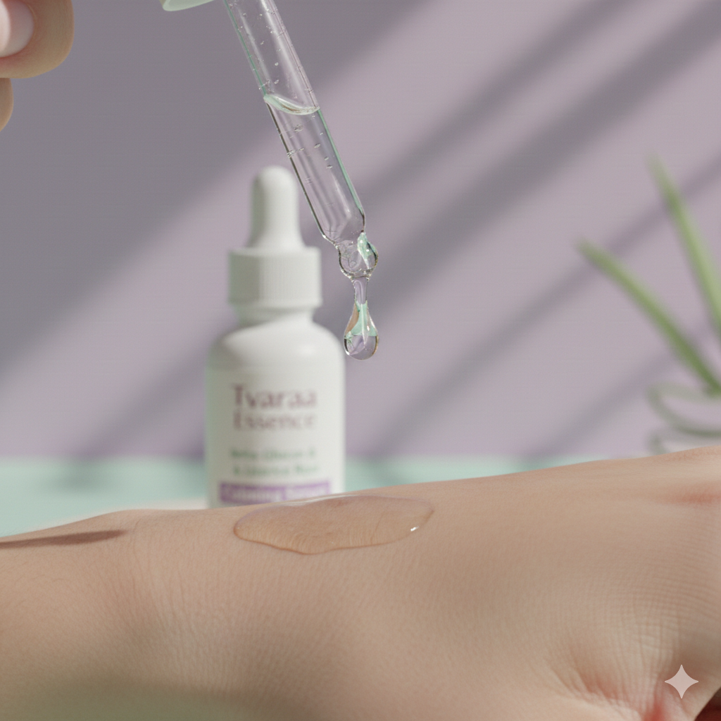 Tvaraa Essence Beta-Glucan & Licorice Root Calming Serum is made for acne-prone skin that flares easily due to stress, hormones, or over-treatment.