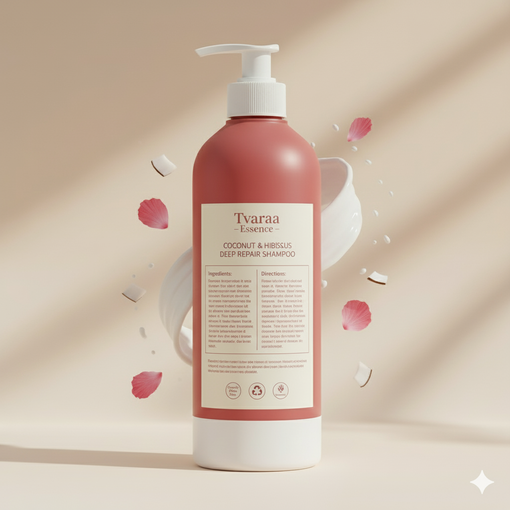 Tvaraa Essence Coconut & Hibiscus Deep Repair Shampoo is crafted to revive dry, rough, and damaged hair using two powerful traditional ingredients. Coconut Milk restores essential moisture, strengthens weak strands, and brings back softness, while Hibiscus Extract helps reduce breakage, supports healthy hair growth, and enhances natural shine.