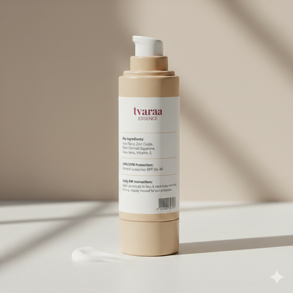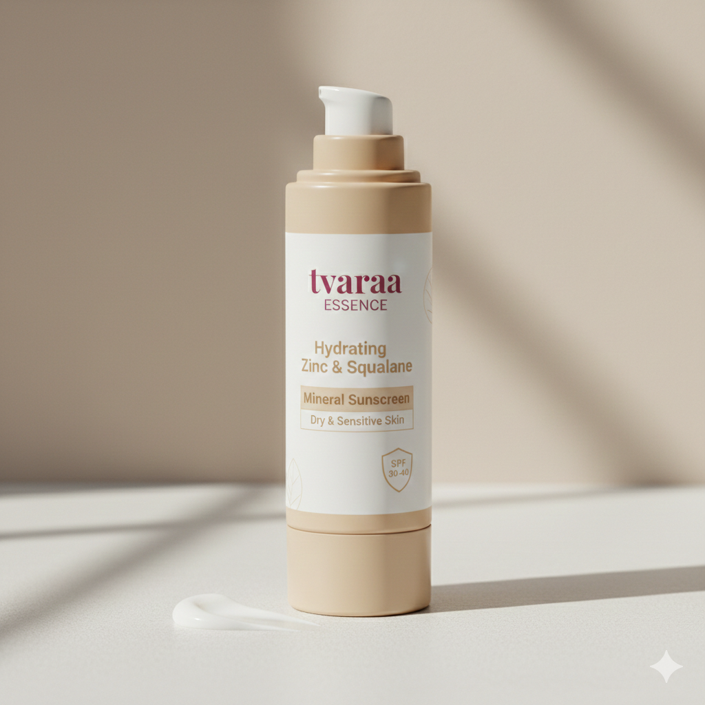 Tvaraa Essence Hydrating Zinc & Squalane Mineral Sunscreen SPF 30–40 – Barrier-Friendly Daily Sunscreen for Dry & Sensitive SkinHydrating Zinc & Squalane Mineral Sunscreen SPF 30–40 – Barrier-Friendly Daily Sunscreen for Dry & Sensitive Skin