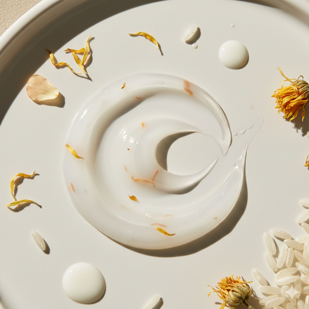 Rice Water helps soften skin, improve smoothness, and maintain moisture balance, making it ideal for fragile or easily reactive skin. Calendula Extract is known for its calming and anti-inflammatory properties, helping reduce redness, discomfort, and sensitivity during cleansing.