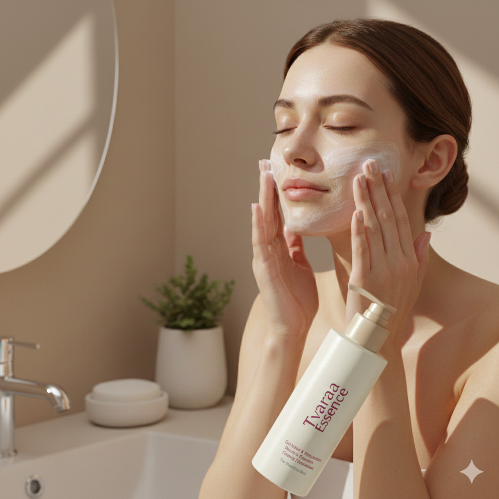 Tvaraa Essence Rice Water & Calendula Soothing Cleanser is crafted for sensitive skin that needs cleansing without stress, tightness, or irritation.