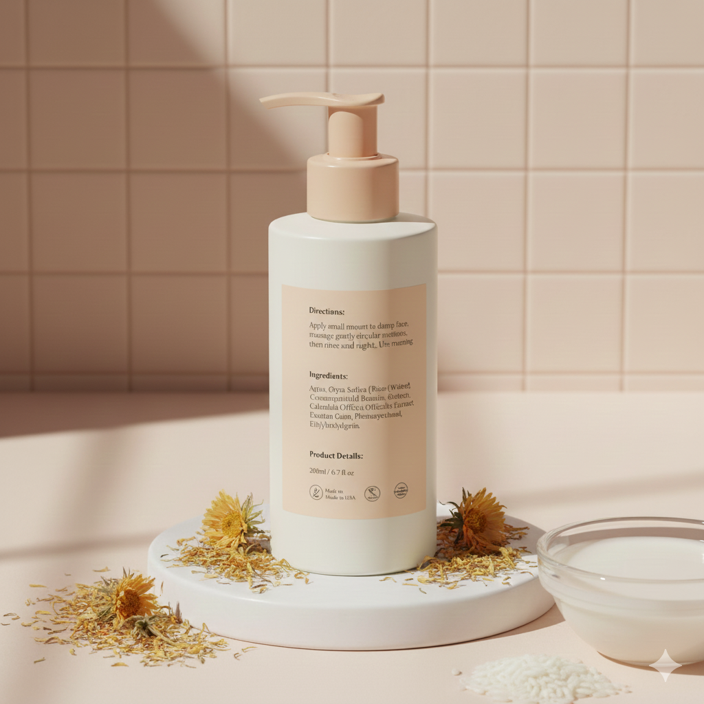 Rice Water & Calendula Soothing Cleanser – Gentle Face Wash for Sensitive Skin